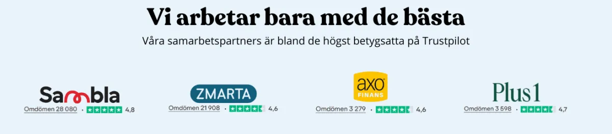 På Lendba arbetar vi för att ge dig en perfekt överblick över dina lånemöjligheter. Vi rankar olika lån baserat på faktorer som popularitet, lånevillkor och vår provision. Vi får ersättning för att skicka kunder till våra samarbetspartners. Du kan se hur vi tjänar pengar här. Läs mer här.